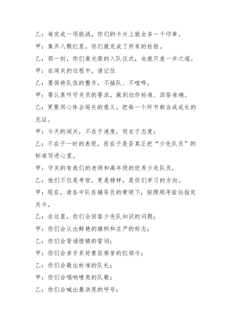 2025年入队知识闯关主持词:入队闯关启新程·星星火炬伴我行 知识点 幼师王老师 2025-10-23 教务 资源下载下载价格1.8 下载币VIP免费升级VIP立即购买 ——预览已结束,还剩2页未读——开通会员后可免费下载高清完整文档 阅读全文