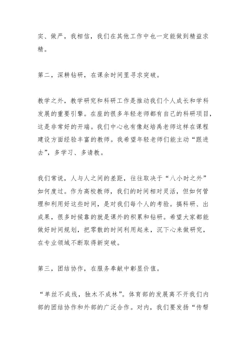 在“学模范、促发展”主题党日活动上的发言:学习模范教师事迹,推动体育部高质量发展 综合资料 幼师芒果 2025-10-22 教务 资源下载下载价格1.8 下载币VIP免费升级VIP立即购买 ——预览已结束,还剩3页未读——开通会员后可免费下载高清完整文档 阅读全文