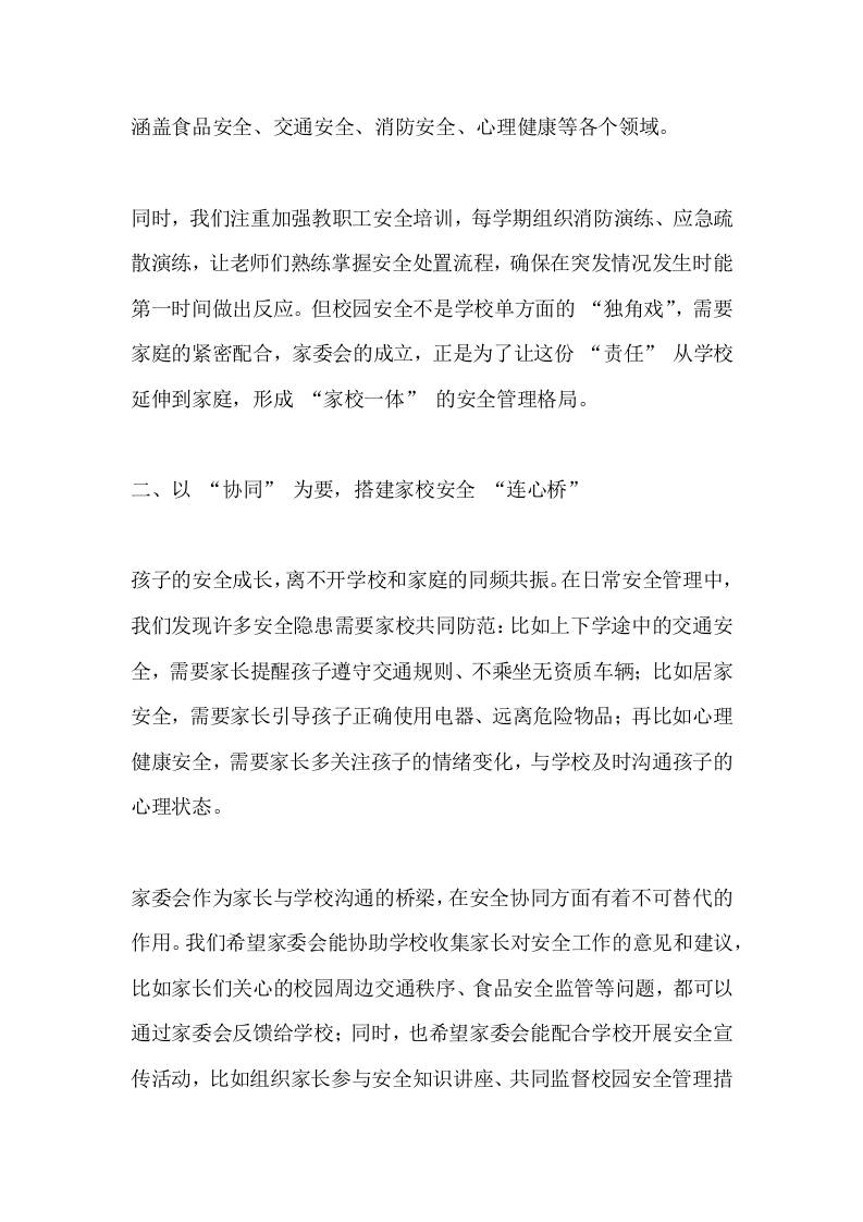 分管安全副校长在学校家委会成立大会上的发言:家校同心守安全,共护成长筑防线 综合资料 幼师芒果 2025-10-22 教务 资源下载下载价格1.2 下载币VIP免费升级VIP立即购买 ——预览已结束,还剩2页未读——开通会员后可免费下载高清完整文档 阅读全文