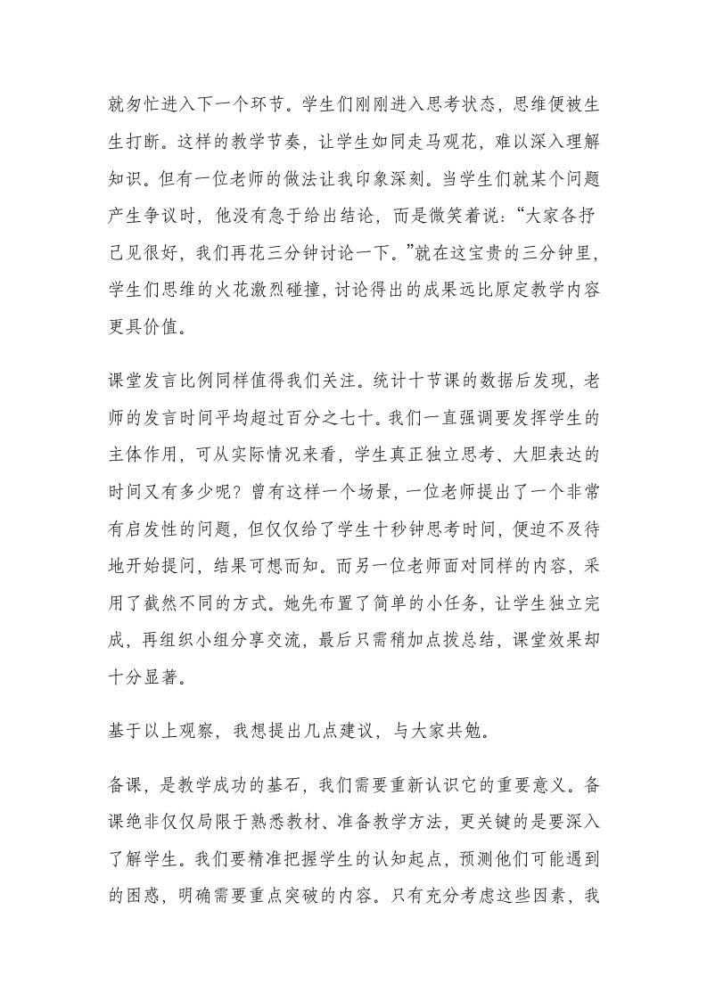 听课十节后校长讲话:从“表演课”到“真课堂”,十节课后的扎心追问! 综合资料 栀晴 2025-10-22 教务 资源下载下载价格1.2 下载币VIP免费升级VIP立即购买 ——预览已结束,还剩3页未读——开通会员后可免费下载高清完整文档 阅读全文