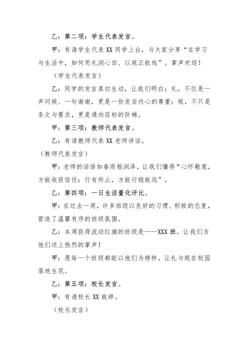 2025年秋季第一学期升旗仪式主持词(21周):第4周礼是春风润心田,规是罗盘指航线 综合资料 雄鹰老师 2025-10-22 教务 资源下载下载价格1.8 下载币VIP免费升级VIP立即购买 ——预览已结束,还剩1页未读——开通会员后可免费下载高清完整文档 阅读全文