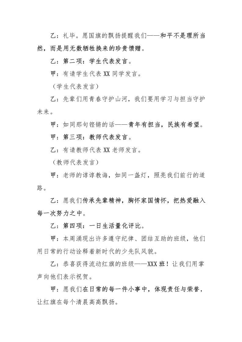2025年秋季第一学期升旗仪式主持词(21周):第8周江山披上赤霞“衣”,热血浇开钢铁花 综合资料 刘波老师 2025-10-22 教务 资源下载下载价格1.8 下载币VIP免费升级VIP立即购买 ——预览已结束,还剩1页未读——开通会员后可免费下载高清完整文档 阅读全文