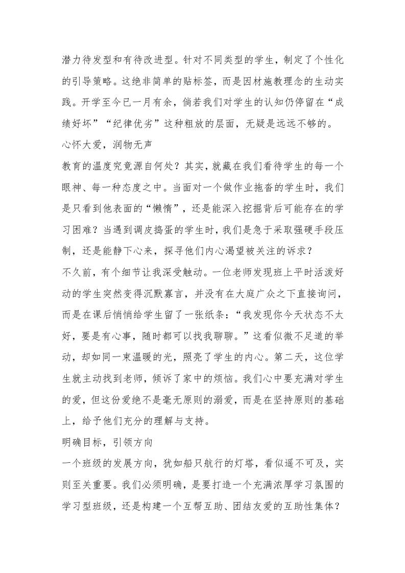班主任工作推进会校长讲话:以心立班、以行治班、以恒成班,做新时代学生成长的筑梦人 综合资料 雄鹰老师 2025-10-22 教务 资源下载下载价格1.2 下载币VIP免费升级VIP立即购买 ——预览已结束,还剩8页未读——开通会员后可免费下载高清完整文档 阅读全文