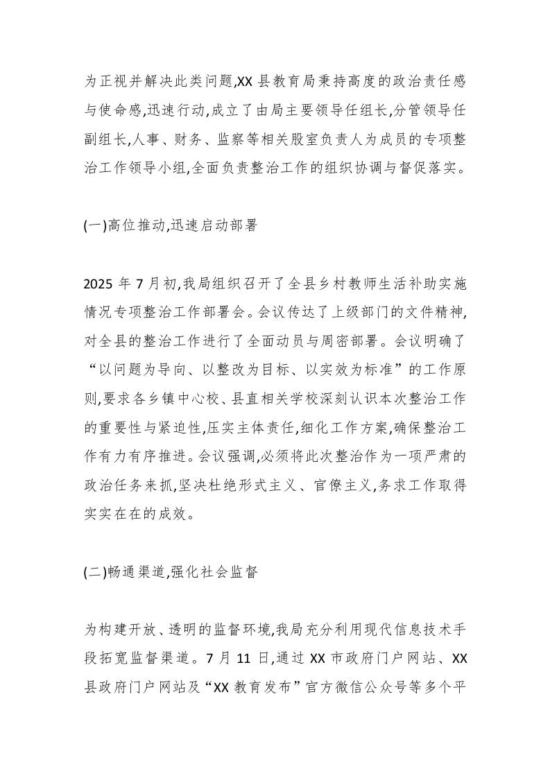 XX县教育局关于乡村教师生活补助实施情况专项整治工作的总结报告(精品) 专项练习 幼师芒果 2025-10-21 教务 资源下载下载价格0.8 下载币VIP免费升级VIP立即购买 ——预览已结束,还剩8页未读——开通会员后可免费下载高清完整文档 阅读全文