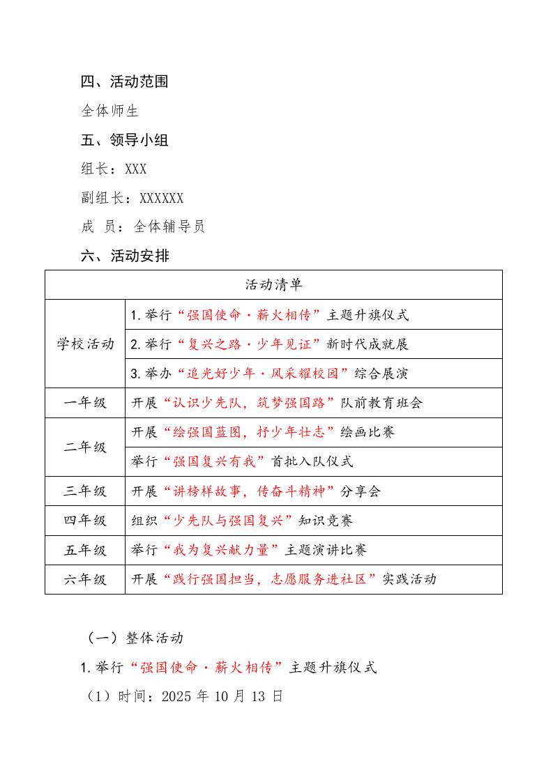 2025少先队建队76周年系列活动实施方案:强国复兴有我,争当新时代好少年 综合资料 幼师常 2025-10-21 教务 资源下载下载价格1.2 下载币VIP免费升级VIP立即购买 ——预览已结束,还剩5页未读——开通会员后可免费下载高清完整文档 阅读全文