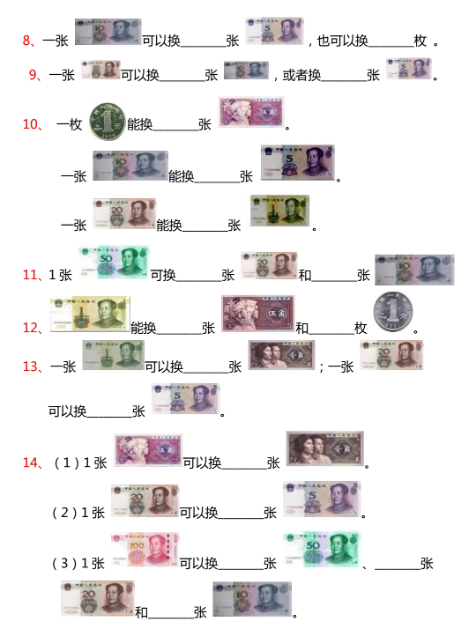 认识人民币专项练习