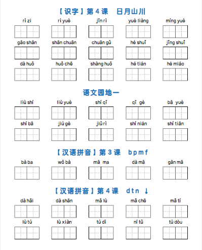 一上语文看拼音写词语