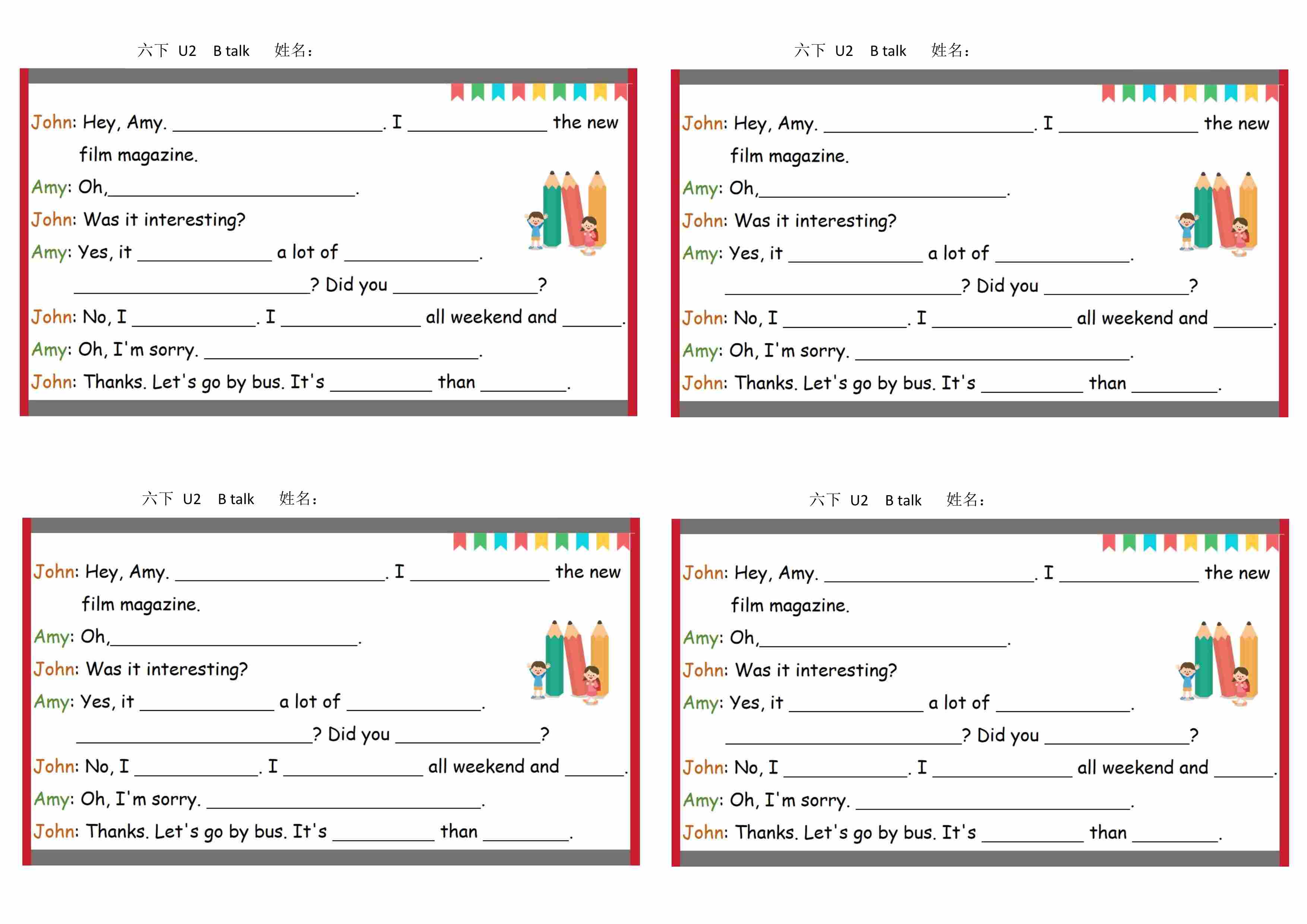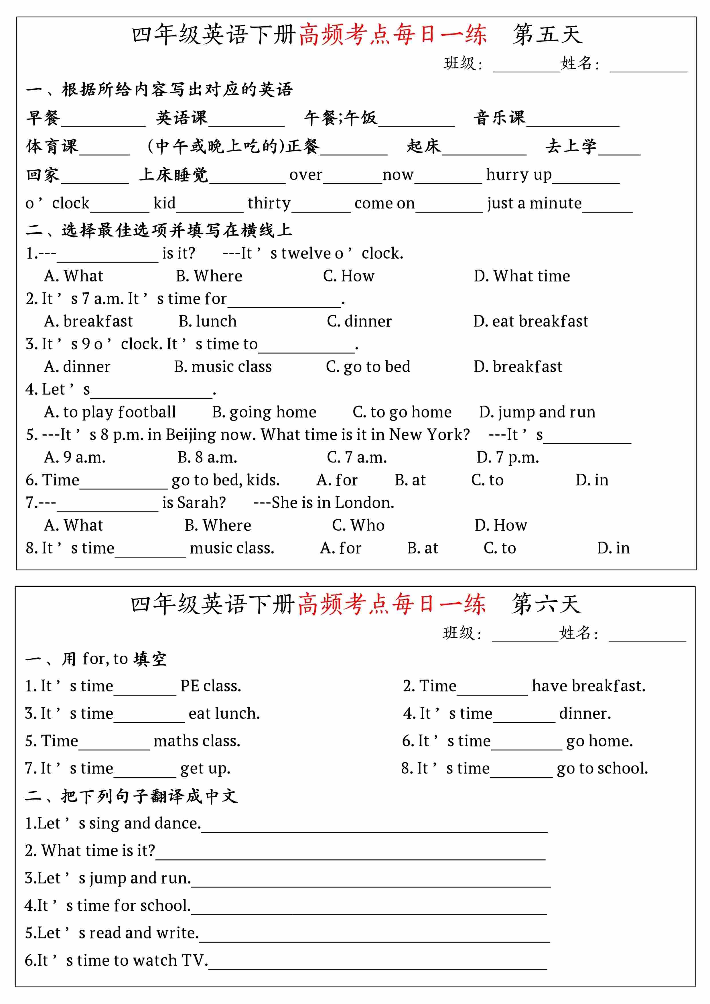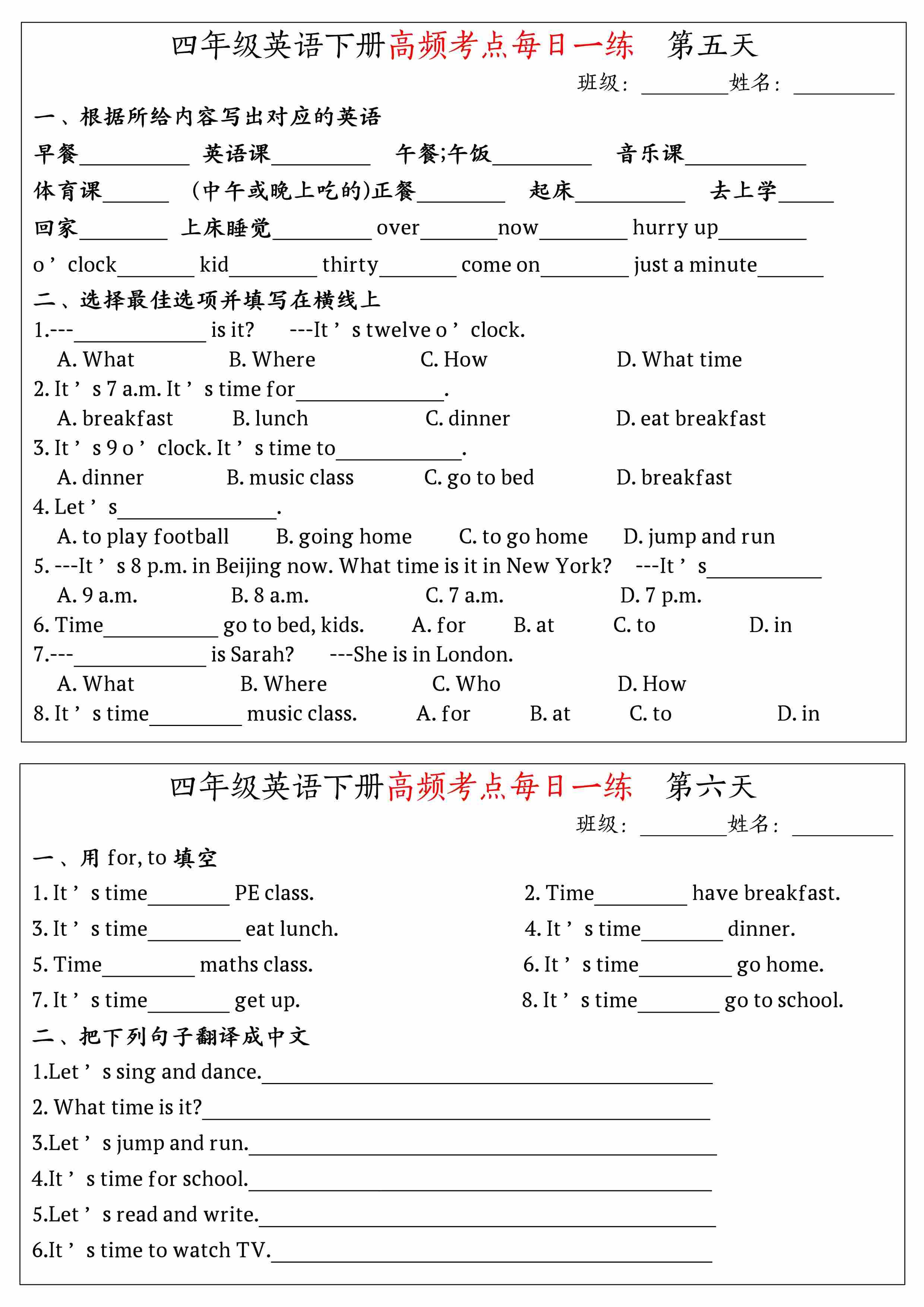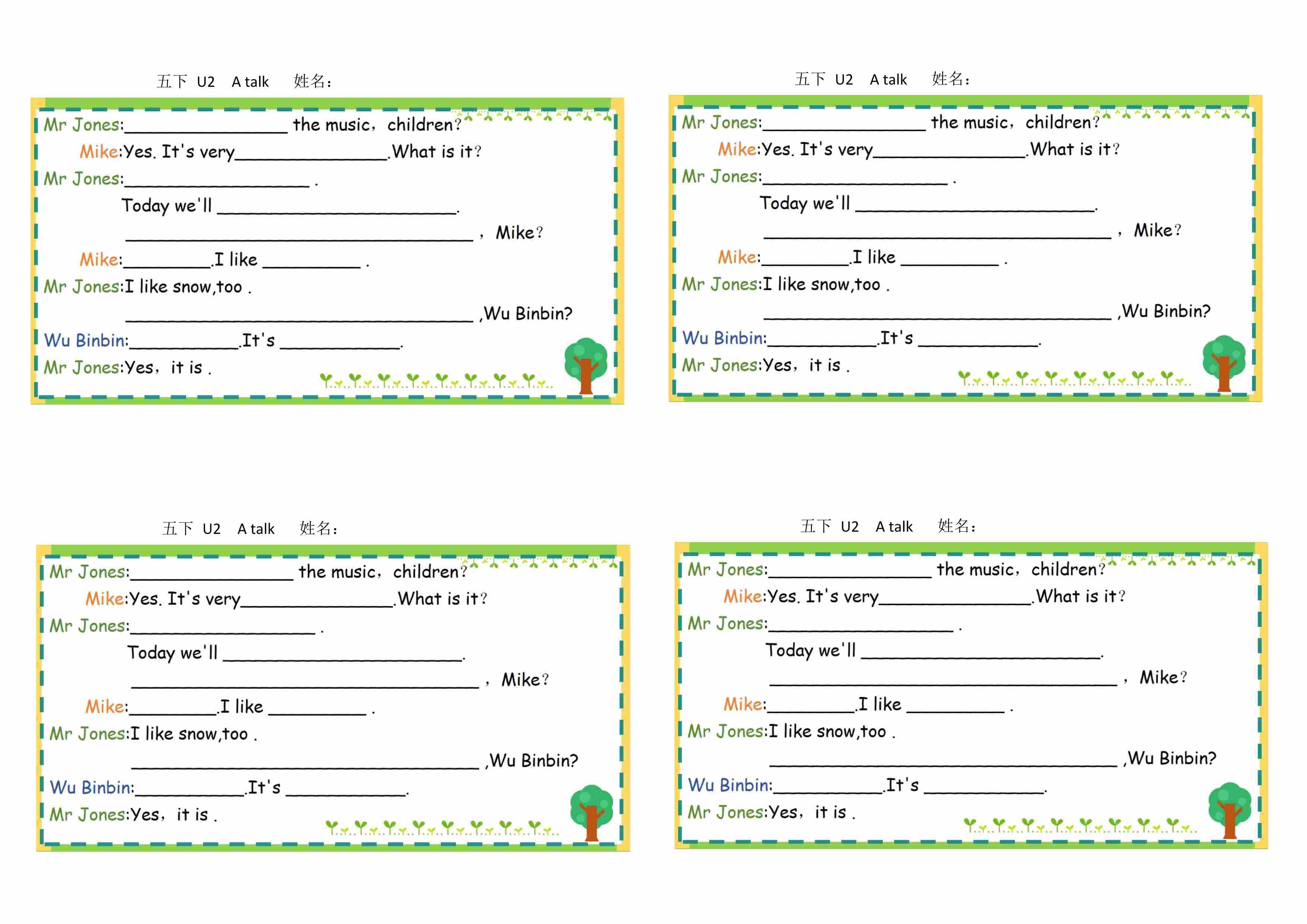 五年级英语上册Unit4_Story_Time课时训练(人教版一起点)