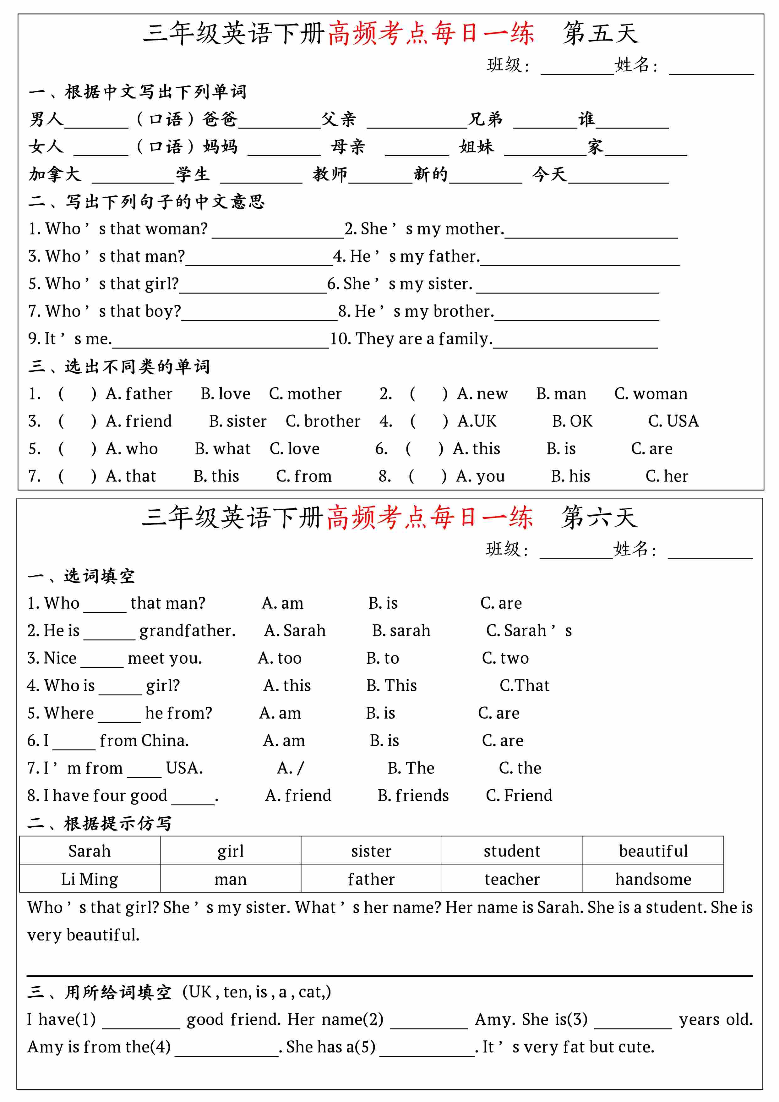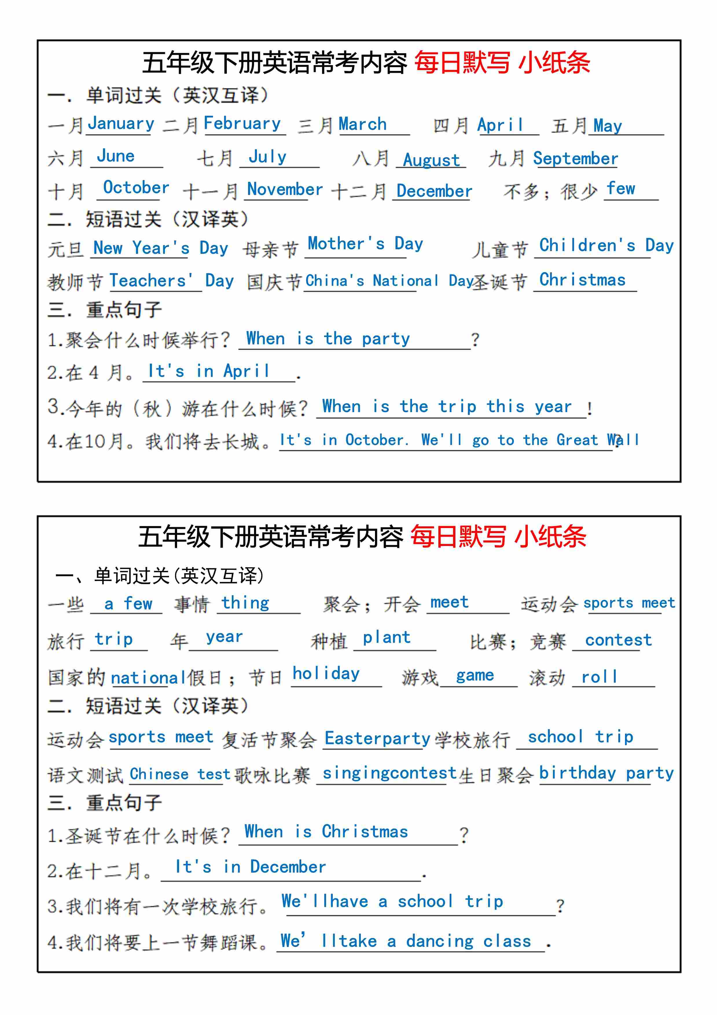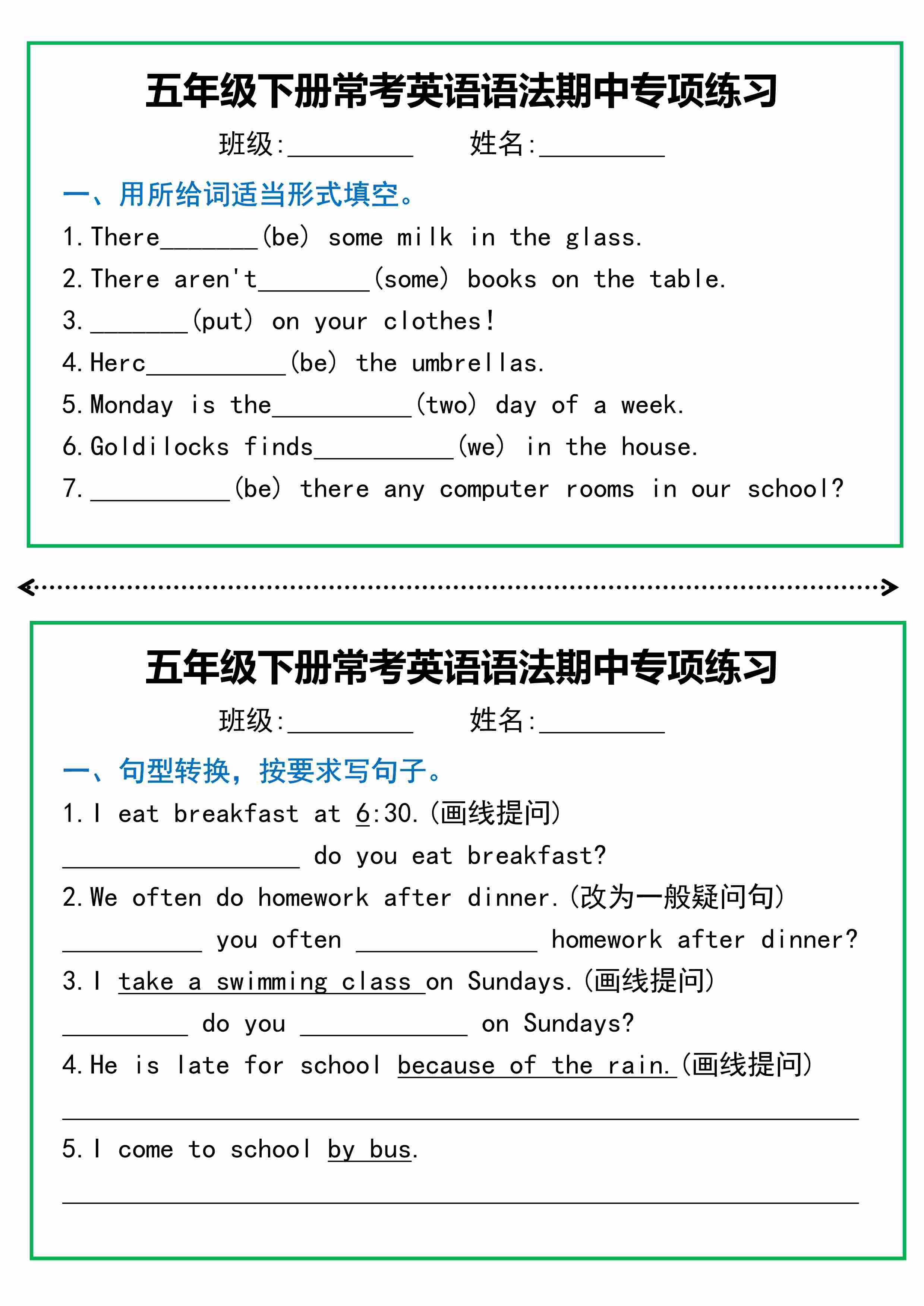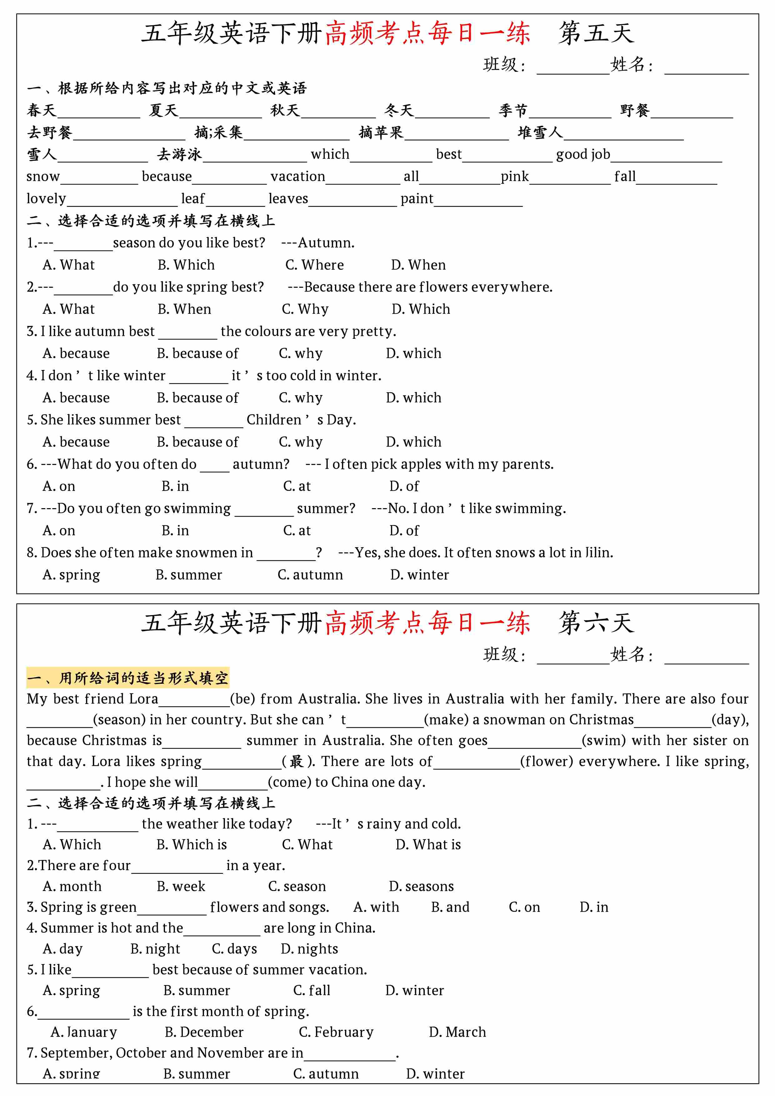 五年级英语上册Unit4习题第2课时(人教版一起点)