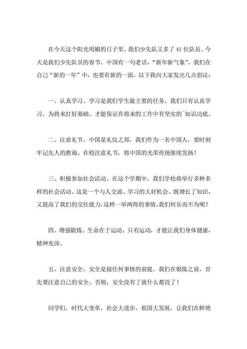 10.13建队日,校长国旗下讲话让我们在鲜艳的队旗下携起手来,共同努力,不断为红领巾添光加彩。 综合资料 刘波老师 2025-10-21 教务 资源下载下载价格1.8 下载币VIP免费升级VIP立即购买 ——预览已结束,还剩1页未读——开通会员后可免费下载高清完整文档 阅读全文