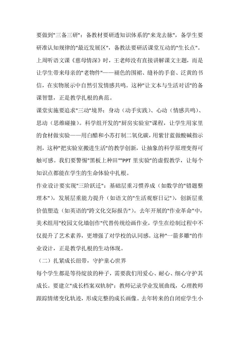 第四周全体教师大会上,校长围绕“3个坚持”精彩讲话:初心扎根守教育,匠心润色育桃李,静心守望待花开 综合资料 幼师优势 2025-10-21 教务 资源下载下载价格1.2 下载币VIP免费升级VIP立即购买 ——预览已结束,还剩7页未读——开通会员后可免费下载高清完整文档 阅读全文