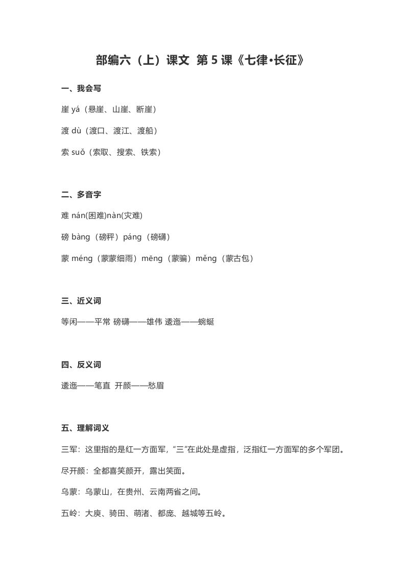 六年级语文上册课文第5课《七律·长征》(部编版) 综合资料 幼师芒果 2025-10-27 六年级 资源下载下载价格1.2 下载币VIP免费升级VIP立即购买 ——预览已结束,还剩1页未读——开通会员后可免费下载高清完整文档 阅读全文