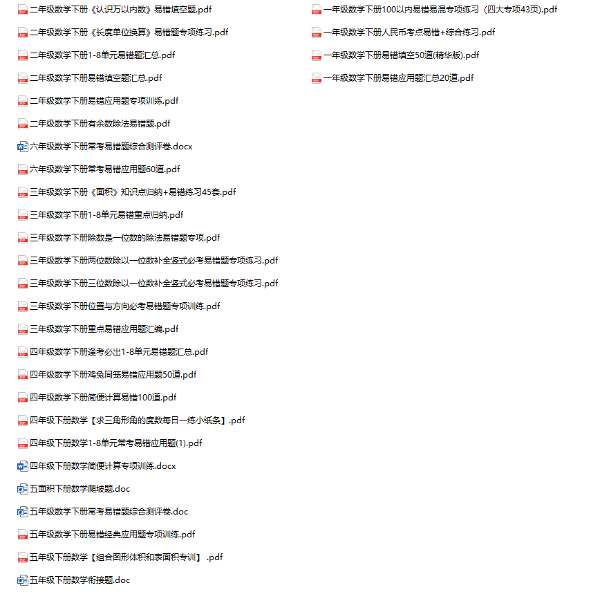《数学期末复习易错题汇总》1-6年级下册