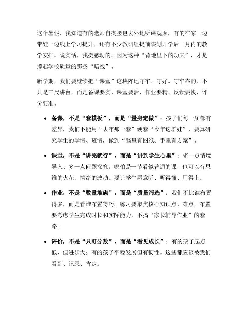 2025年秋季学期全体教职工大会上,校长讲话:开学不只是归位,更是蓄力! 综合资料 雄鹰老师 2025-10-20 教务 资源下载下载价格1.8 下载币VIP免费升级VIP立即购买 ——预览已结束,还剩3页未读——开通会员后可免费下载高清完整文档 阅读全文