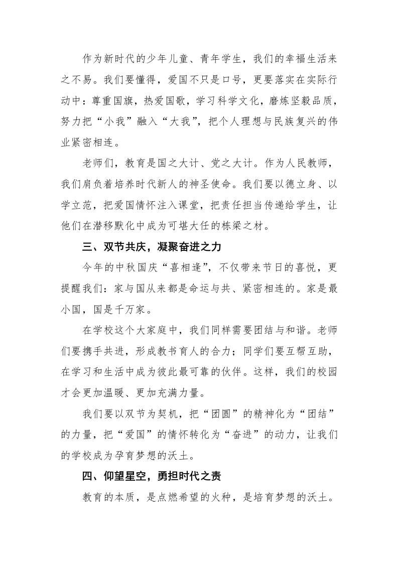 2025年中秋国庆双节校长致辞稿:月满华诞映丹心,家国同辉育桃李 综合资料 刘波老师 2025-10-20 教务 资源下载下载价格1.2 下载币VIP免费升级VIP立即购买 ——预览已结束,还剩2页未读——开通会员后可免费下载高清完整文档 阅读全文