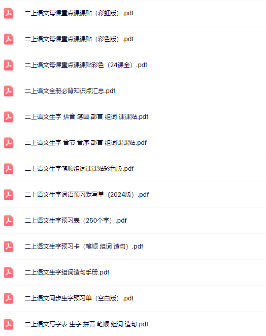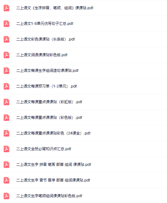 《二年级上册语文热门预习重点资料汇总(多个版本课课贴)》