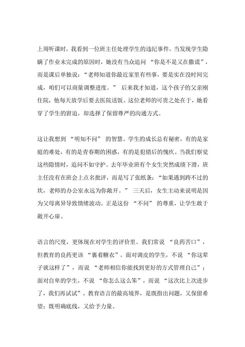 校长在全体教师大会上发言:9字箴言,言有尺,心有界,行有度。以言行立教,以境界育人 综合资料 幼师郝雪 2025-10-20 教务 资源下载下载价格0.8 下载币VIP免费升级VIP立即购买 ——预览已结束,还剩6页未读——开通会员后可免费下载高清完整文档 阅读全文