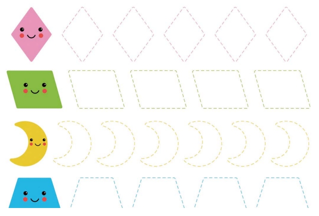 6页打包!图形曲线绘制练习_2 亲子控笔描红线条图形认知游戏,电子版PDF可打印【超高质量】