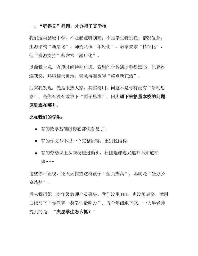 某中学校长在学校办学管理经验交流会上的发言:脚下有泥,眼里有光,心中有数——谈几点办学的真体会! 综合资料 栀晴 2025-10-20 教务 资源下载下载价格0.8 下载币VIP免费升级VIP立即购买 ——预览已结束,还剩4页未读——开通会员后可免费下载高清完整文档 阅读全文