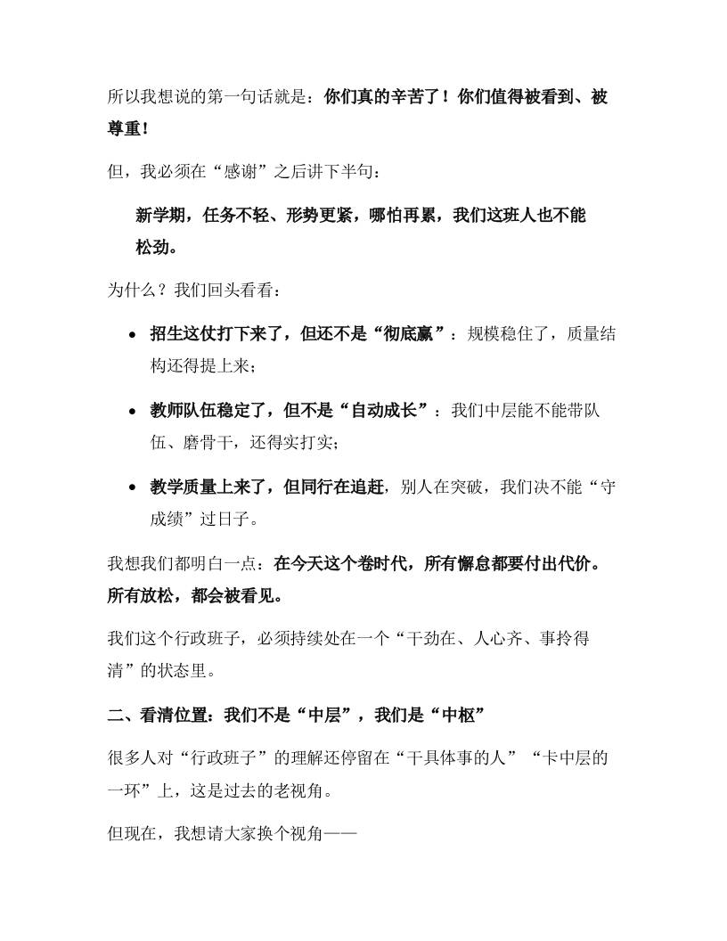 2025年秋季开学第一次行政中层班子会上,校长讲话:新学期,咱们这一班人,要怎么干? 综合资料 幼师酸奶 2025-10-19 教务 资源下载下载价格1.8 下载币VIP免费升级VIP立即购买 ——预览已结束,还剩5页未读——开通会员后可免费下载高清完整文档 阅读全文