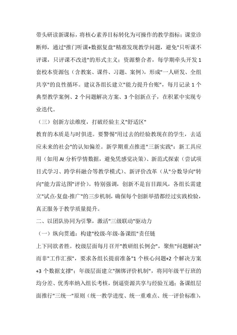 教研组长和备课组长会议上,校长讲话:3个维度筑牢质量根基,120%执行决胜新学期 综合资料 2025-10-19 教务 资源下载下载价格0.8 下载币VIP免费升级VIP立即购买 ——预览已结束,还剩3页未读——开通会员后可免费下载高清完整文档 阅读全文