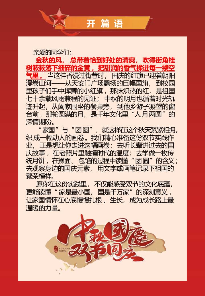 2025国庆节中秋节双节特色实践作业(三) 综合资料 2025-10-19 教务 资源下载下载价格1.2 下载币VIP免费升级VIP立即购买 ——预览已结束,还剩8页未读——开通会员后可免费下载高清完整文档 阅读全文