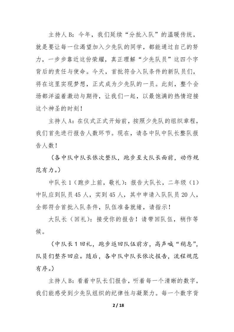 2025年第76个少先队建队日入队仪式主持词:星星火炬照新程逐梦少年续华章 综合资料 幼师芒果 2025-10-19 教务 资源下载下载价格0.8 下载币VIP免费升级VIP立即购买 ——预览已结束,还剩16页未读——开通会员后可免费下载高清完整文档 阅读全文