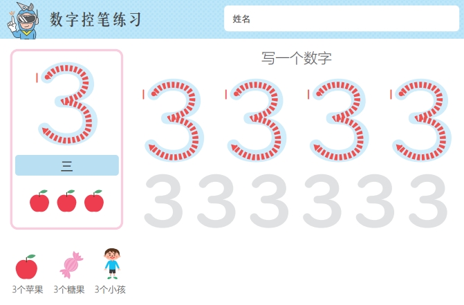13页打包!超萌卡通数字1-10控笔训练,横板,电子版PDF可打印【超高质量】