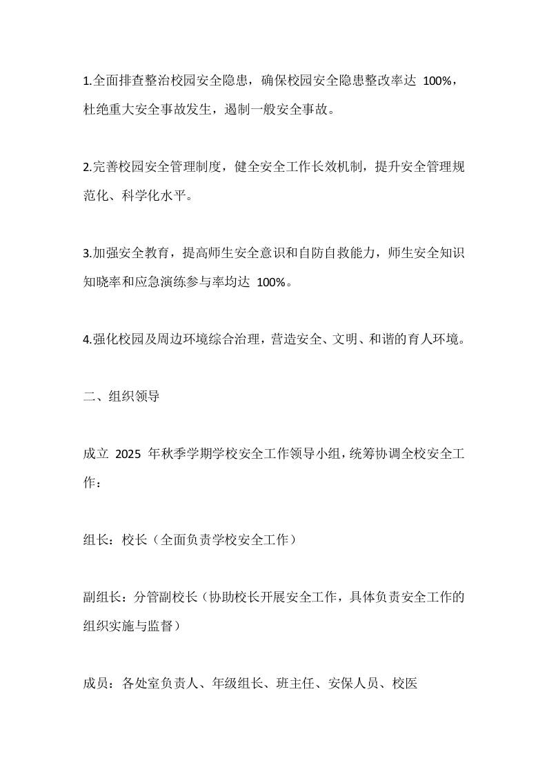 2025-2026年秋季第一学期学期学校安全工作计划(内容包含每月行事历):筑牢安全防护网,护航教育新征程 综合资料 王赞 2025-10-19 教务 资源下载下载价格0.8 下载币VIP免费升级VIP立即购买 ——预览已结束,还剩10页未读——开通会员后可免费下载高清完整文档 阅读全文