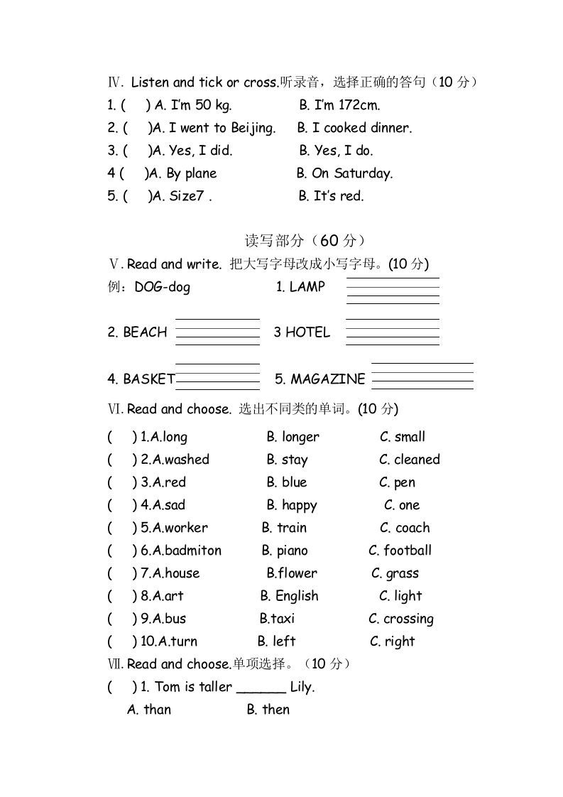 六年级英语下册期末检测卷 期末试卷 幼师郝雪 2025-10-27 六年级 资源下载下载价格1.8 下载币VIP免费升级VIP立即购买 ——预览已结束,还剩1页未读——开通会员后可免费下载高清完整文档 阅读全文