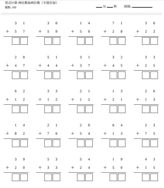 16页打包!竖式计算400题,两位数加减两位数,电子版PDF可打印【超高质量】