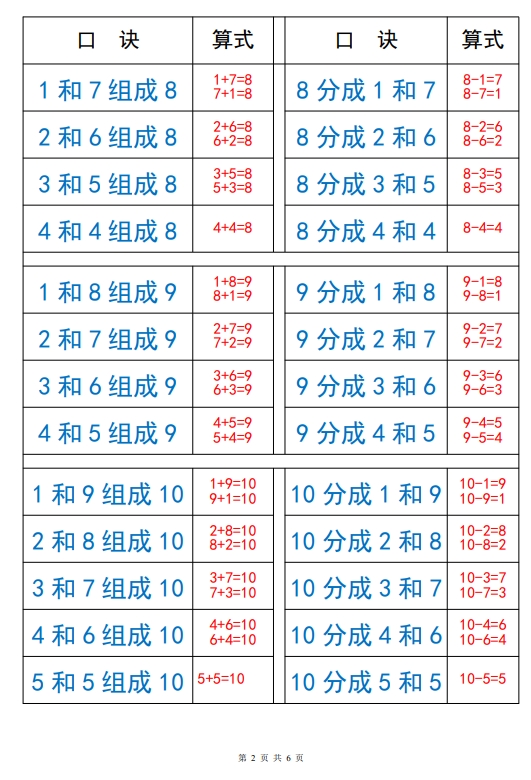 6页打包!10以内数的组成与分解,电子版PDF可打印【超高质量】