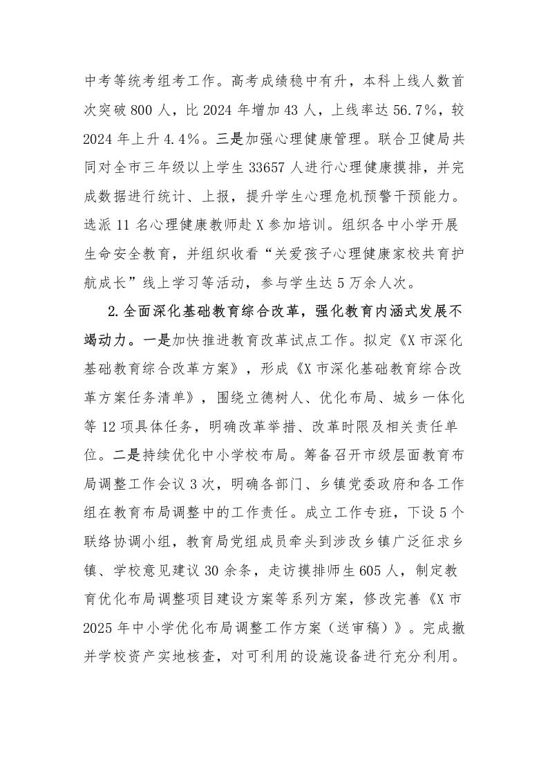 市教育局2025年上半年工作总结和下半年重点工作 综合资料 幼师郝雪 2025-10-19 教务 资源下载下载价格0.8 下载币VIP免费升级VIP立即购买 ——预览已结束,还剩6页未读——开通会员后可免费下载高清完整文档 阅读全文
