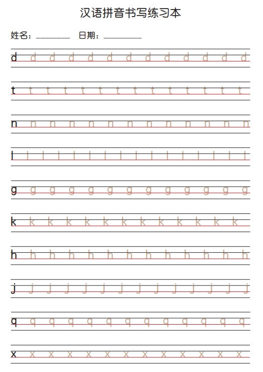 7页打包!汉语拼音书写练习本+描红版,电子版PDF可打印【超高质量】