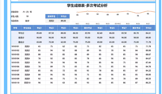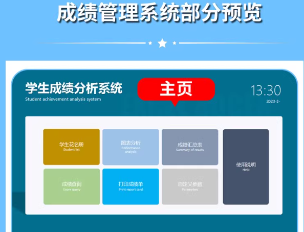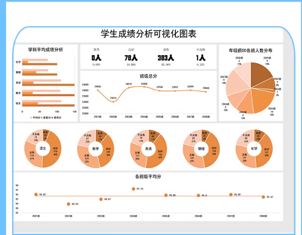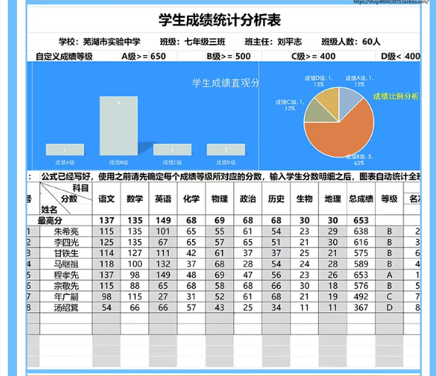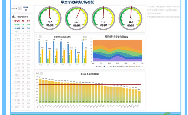学生成绩排名统计分析个人成绩自动计算管理登记系统excel图表格