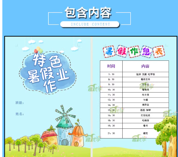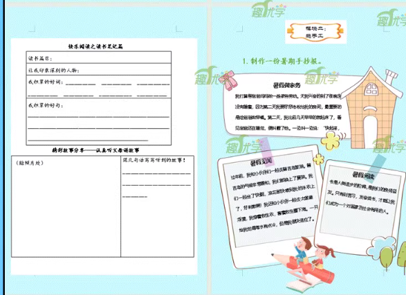 小学生特色暑假作业暑假生活实践成长手册语文特色作业设计word