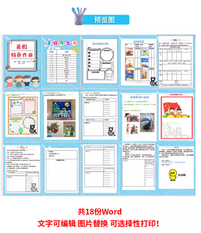 暑假生活实践特色作业小学生成长手册小报手抄报封面word模板电子