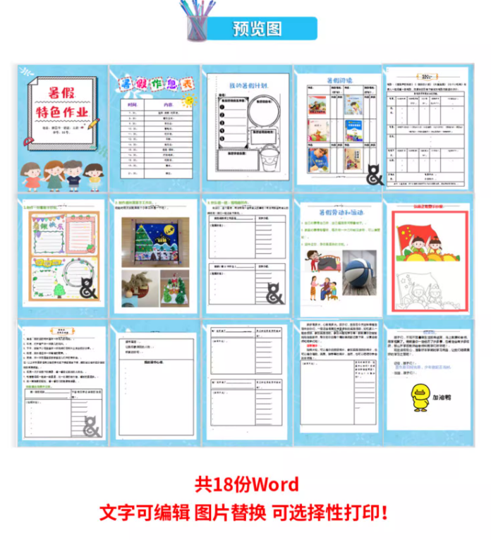 暑假生活实践特色作业小学生成长手册小报设计封面word模板版计划
