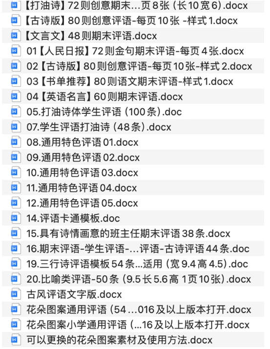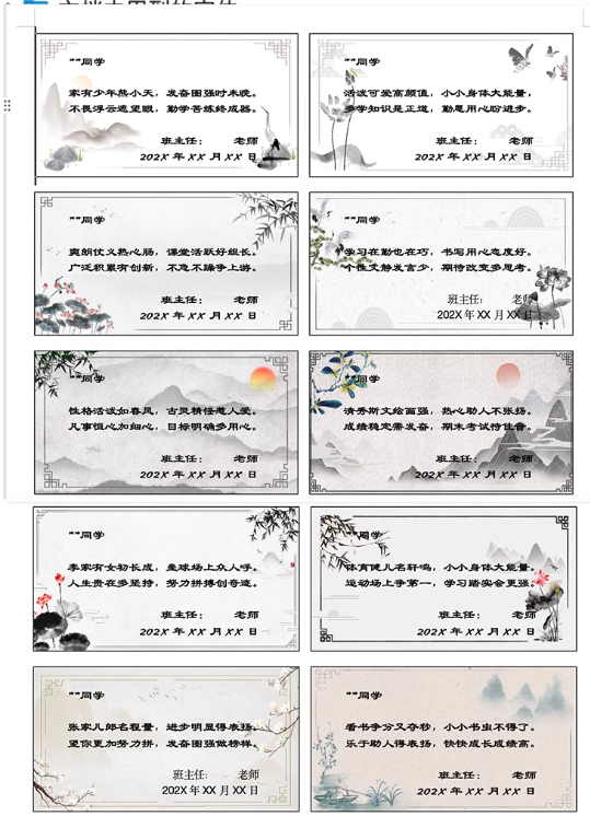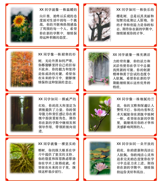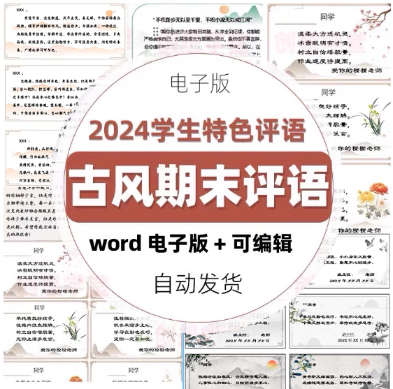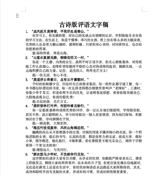 古风创意期末评语古诗特色评语2024中小学班主任电子版wrod模版