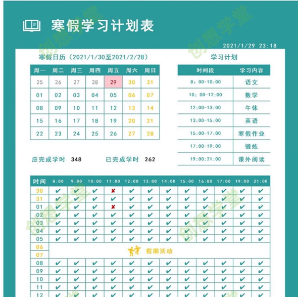 大中小学寒暑假安排计划表WPS表格EXCEL考研考博假期课程表电子版