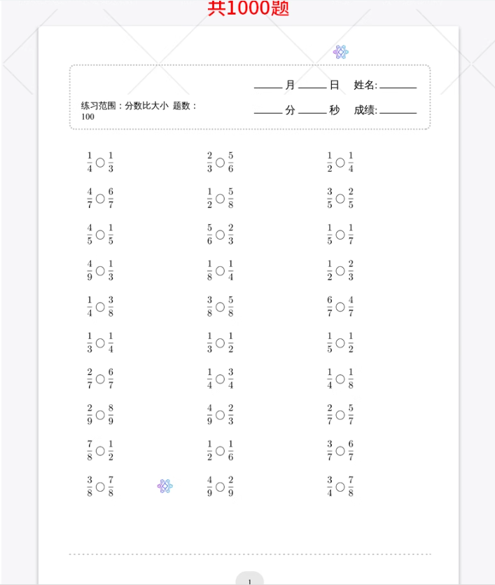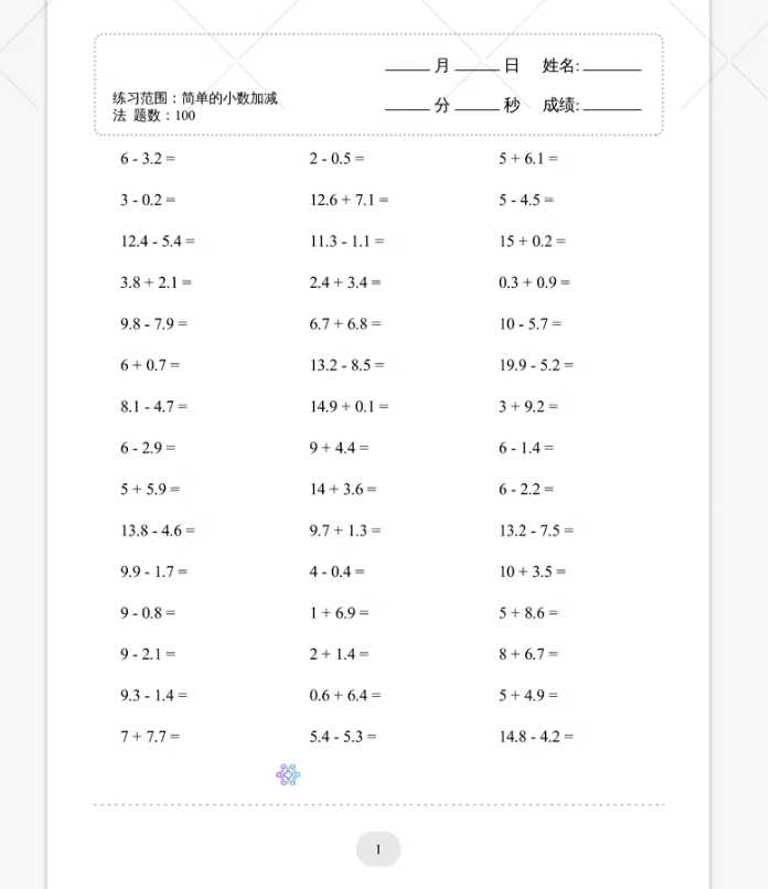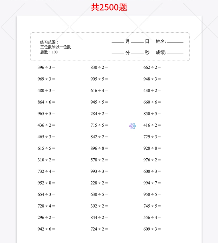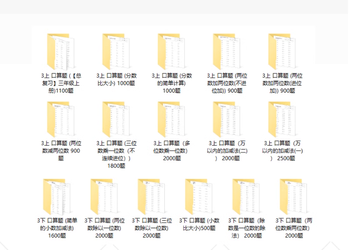 小学数学三年级上下册口算题加减速算天天练计算练习题电子版打印