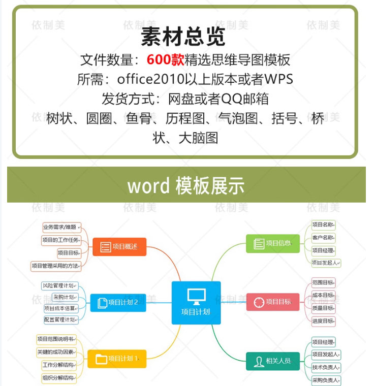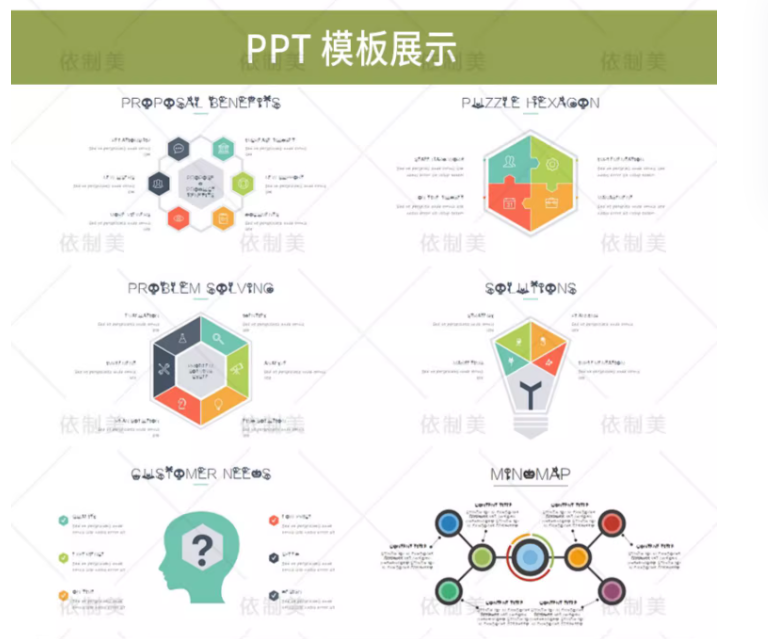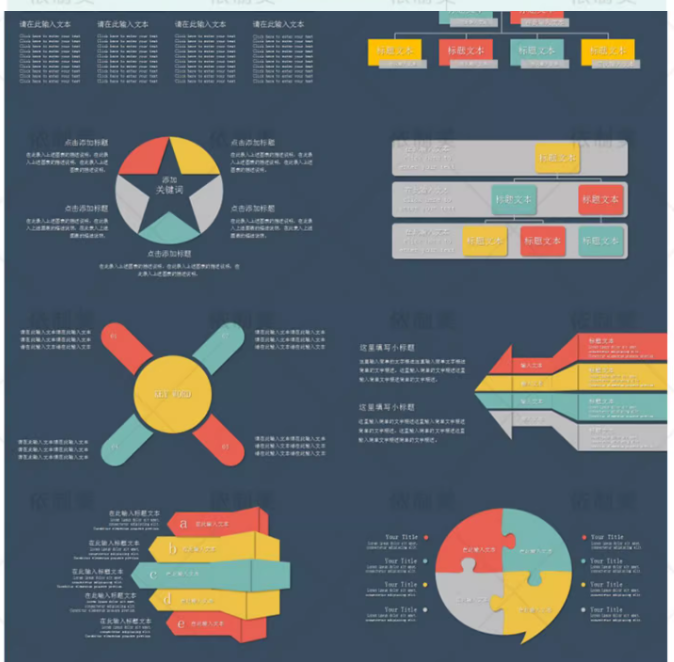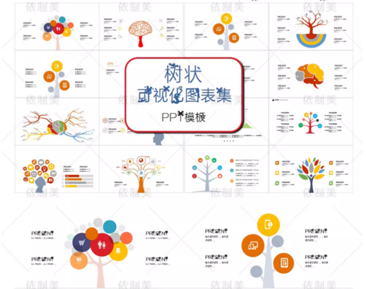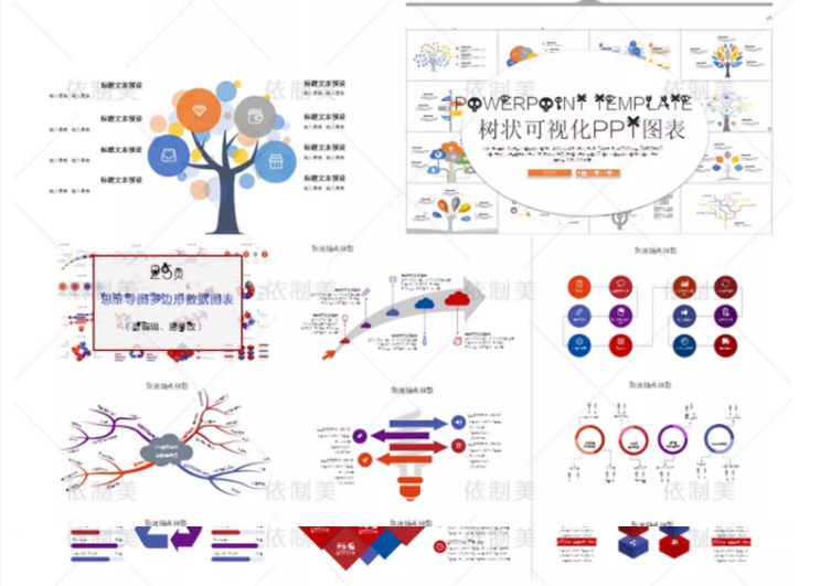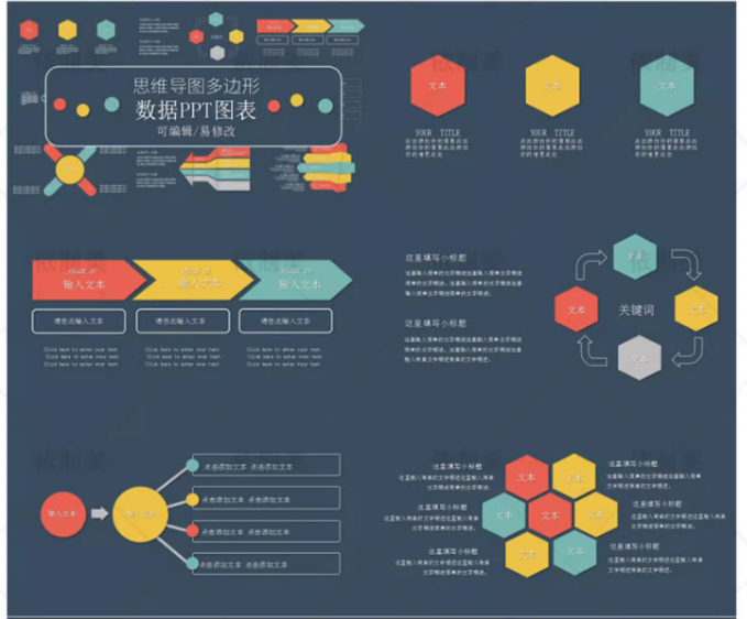思维导图PPT模板word信息可视化对比多边形大脑树图形状数据图表