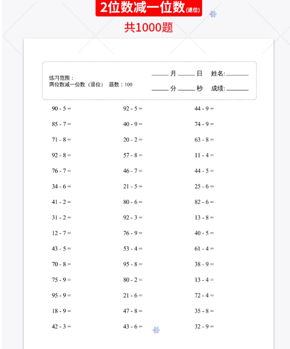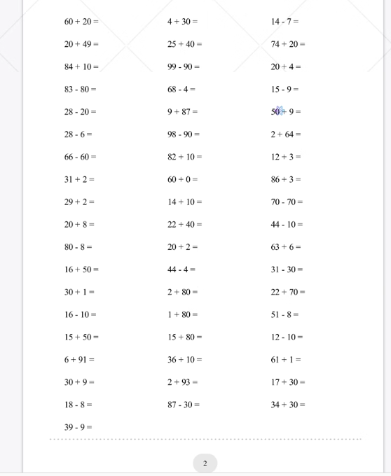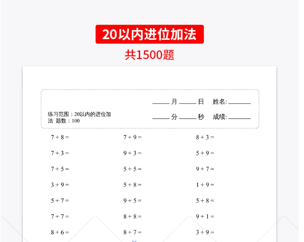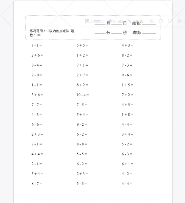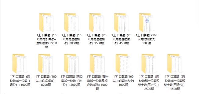 小学一年级数学上下册口算题加减速算天天练计算练习题电子版打印