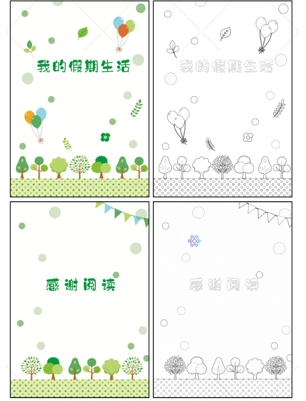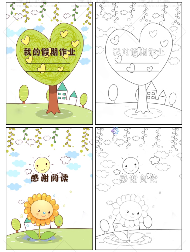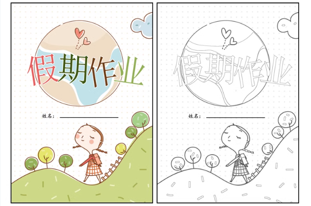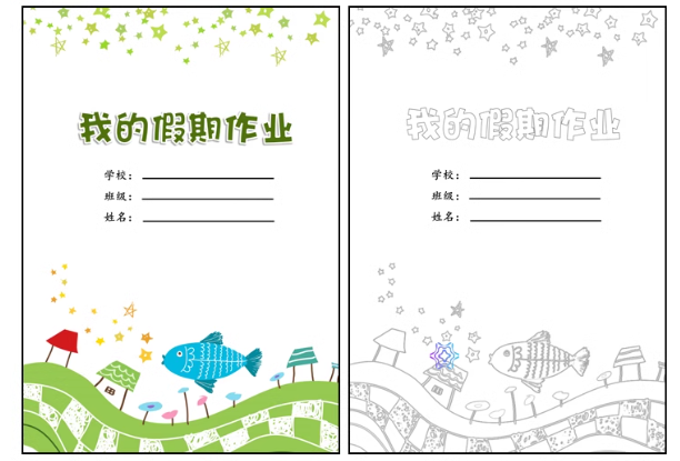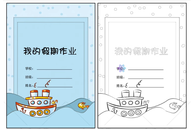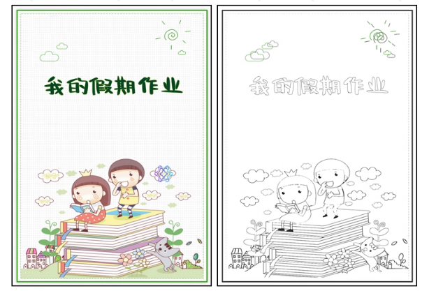 中小学生寒暑假作业封面封底模板可涂色线稿作业封皮word电子版A4