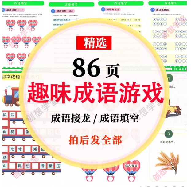 趣味成语游戏电子版素材成语接龙灯谜猜成语填字成语练习PDF素材