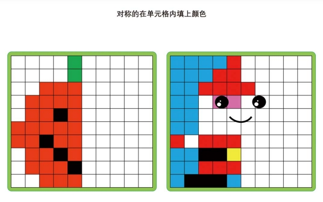 15页打包!对称的在单元格内填上颜色 ,电子版PDF打印【超高质量】