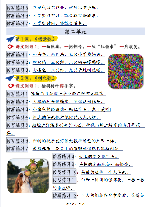 语文二上期末重点【仿写】句子汇总1-8单元24页