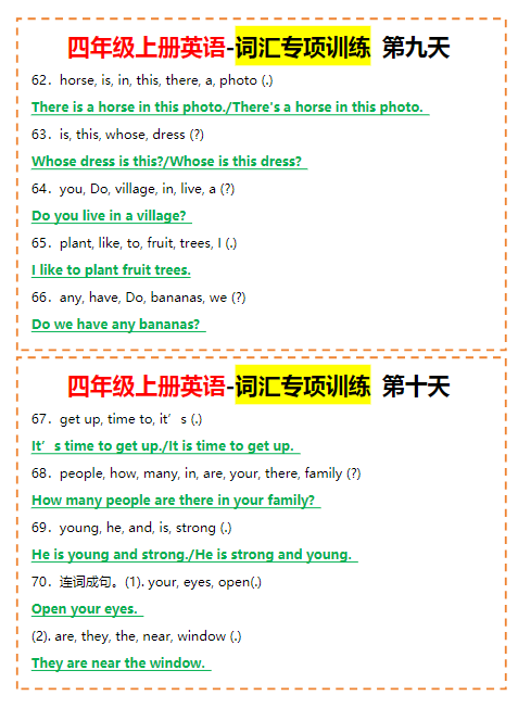 四年级上册英语期末-词汇专项训练(空白+答案)