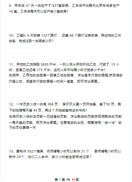 四上数学期末1-8单元易错题应用题专项练习(空白版)