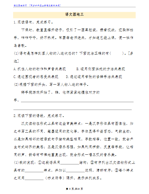 语文园地专项练习六年级语文上册期末